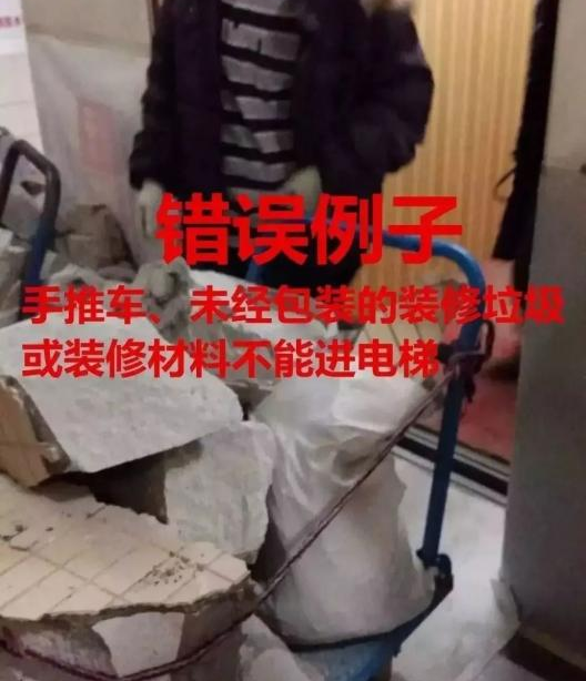 建议业主装修时,用大袋子把这些垃圾整理好,再放入电梯内。当然也要考虑一下电梯的承重,不要超载。温柔一点对电梯,它不也让您少操心嘛!